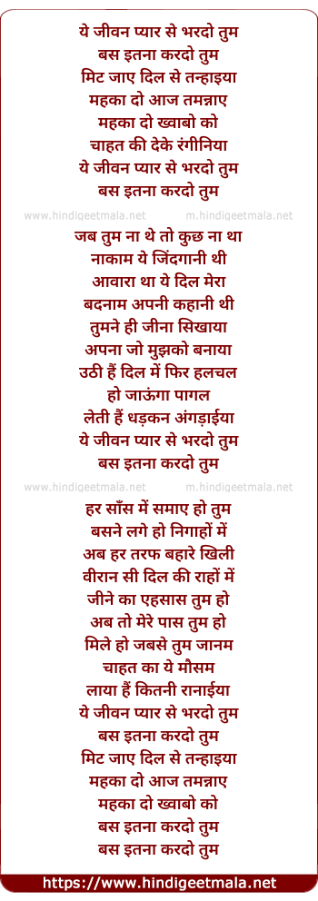 Lyrics of Ye Jiwan Pyar Se Bhar Do Tum - ये जीवन प्यार से भरदो तुम