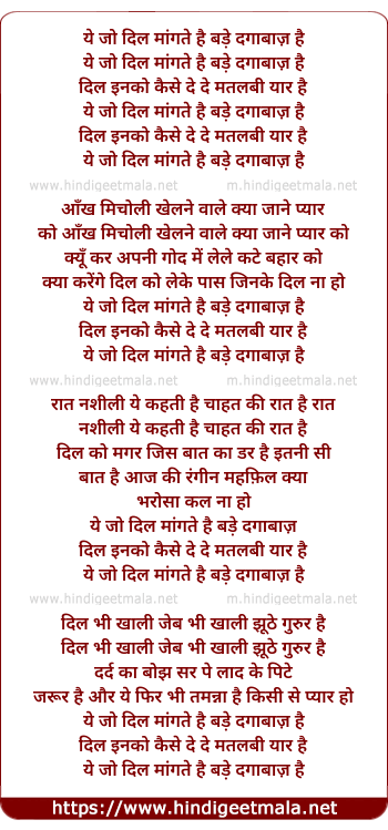 ye jo dil mangte hai bade dagabaz hai