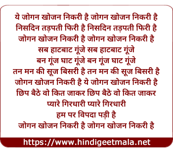 Lyrics of Ye Jogan Khojan Nikri Hai - ये जोगन खोजन निकरी है