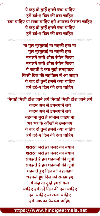 Lyrics of Ye Kahdo Tumhe Humse Kya Chahiye - ये कहदो तुम्हें हमसे क्या चाहिए