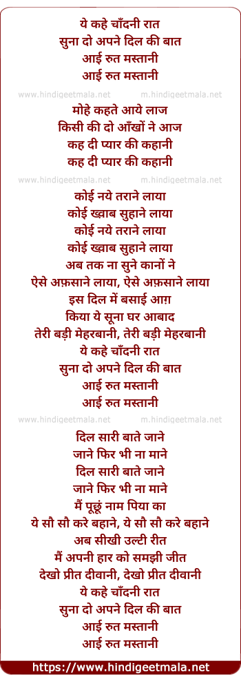Lyrics of Ye Kahe Chandni Raat - ये कहे चाँदनी रात