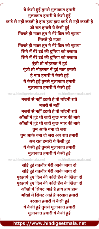 Lyrics of Ye Kaisi Huyi Tumse Mulakat Hamari - ये कैसी हुई तुमसे मुलाकात हमारी