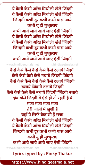 Lyrics of Ye Kaisi Kaisi Aankh Micholi Khel Zindagi - ये कैसी कैसी आँख मिचोली खेले जिंदगी