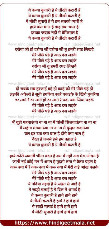 Lyrics of Ye Kanya Kunwari Hai - ये कन्या कुंवारी है