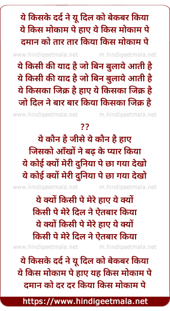 Lyrics of Ye Kiske Dard Ne Yu Dil Ko - ये किसके दर्द ने यू दिल को