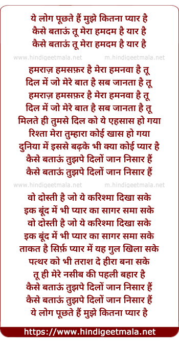 Lyrics of Ye Log Puchhte Hai Mujhe Kitna Pyar Hai - ये लोग पूछते हैं मुझे कितना प्यार है