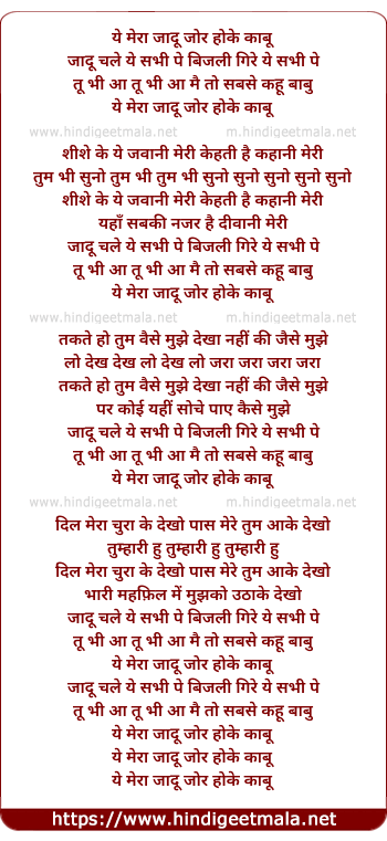 Lyrics of Ye Mera Jadu Jor Hoke Kabu - ये मेरा जादू जोर होके काबू
