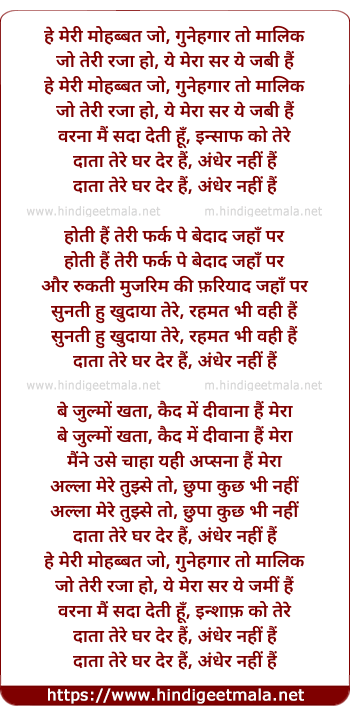 Lyrics of He Meri Mohabbat Jo Gunehgar - हे मेरी मोहब्बत जो गुनेहगार