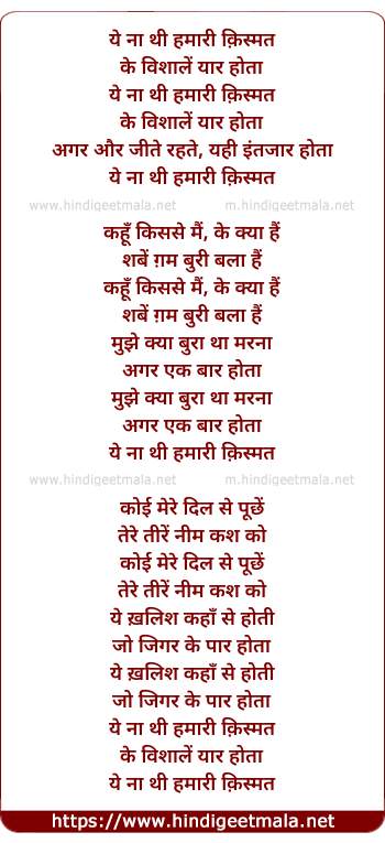 Lyrics of Ye Na The Hamari Kismat Ke - ये ना थी हमारी क़िस्मत के