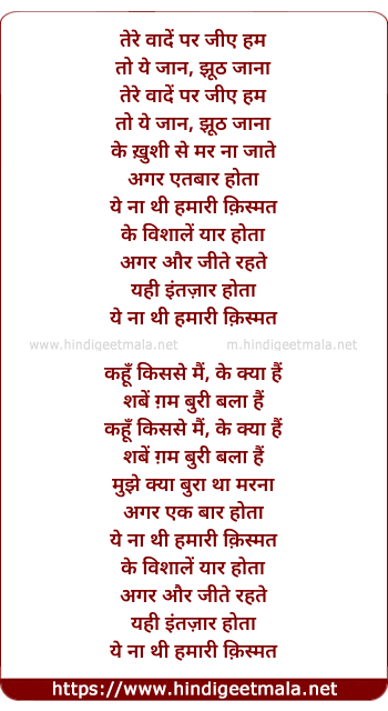 Lyrics of Ye Na The Hamari Kismat Ke (2) - ये ना थे हमारी किस्मत के