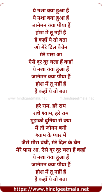 Lyrics of Ye Nasha Kya Hua Hai - ये नशा क्या हुआ हैं