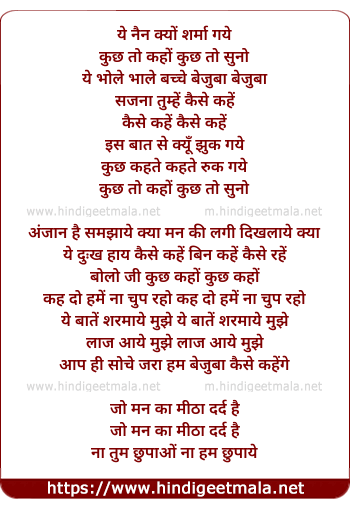 Lyrics of Ye Nayan Kyun Sharma Gaye - ये नैन क्यों शर्मा गये