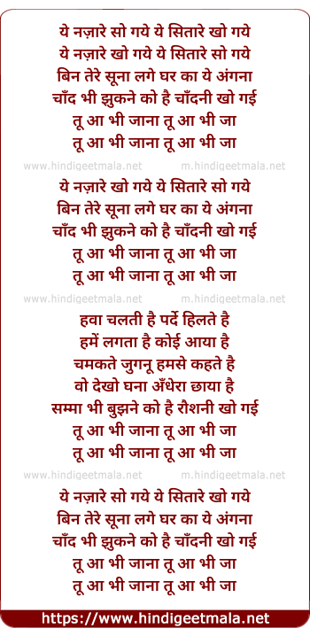 Lyrics of Ye Nazare So Gaye - ये नज़ारे सो गये ये सितारे खो गये