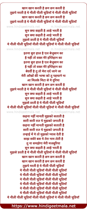 Lyrics of Ye Neeli Peeli Choodiya - ये नीली पीली चूडियाँ