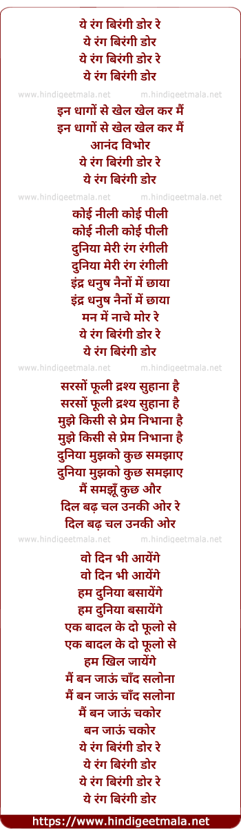 Lyrics of Ye Rang Birangi Dor Hai - ये रंग बिरंगी डोर रे