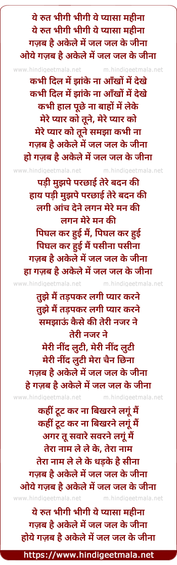 Lyrics of Ye Rut Bheegi Bheegi Ye Pyasa Mahina - ये रुत भीगी भीगी ये प्यासा महीना
