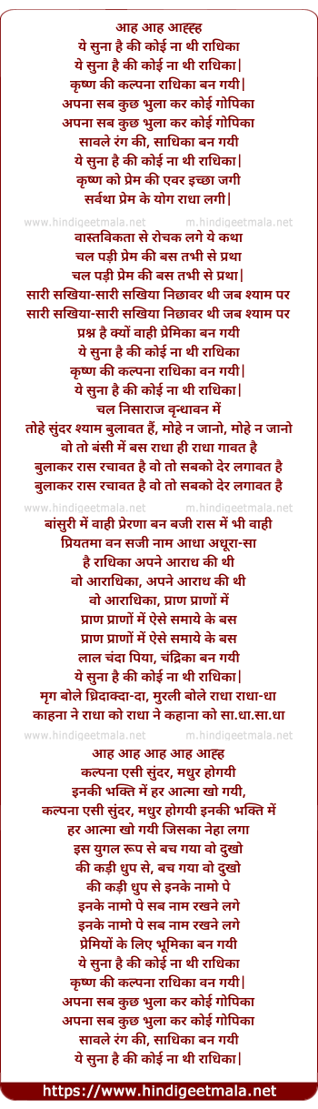 Lyrics of Ye Suna Hai Ke Koi Na Thi Radhika