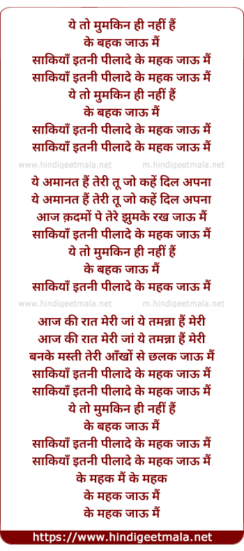 Lyrics of Ye Toh Mumkin Hi Nahi Hai - ये तो मुमकिन ही नहीं हैं
