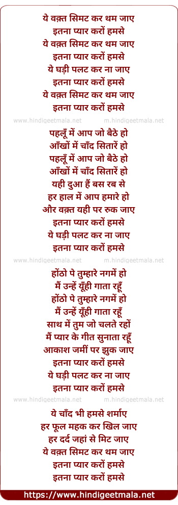 Lyrics of Ye Waqt Simat Kar - ये वक़्त सिमट कर थम जाए