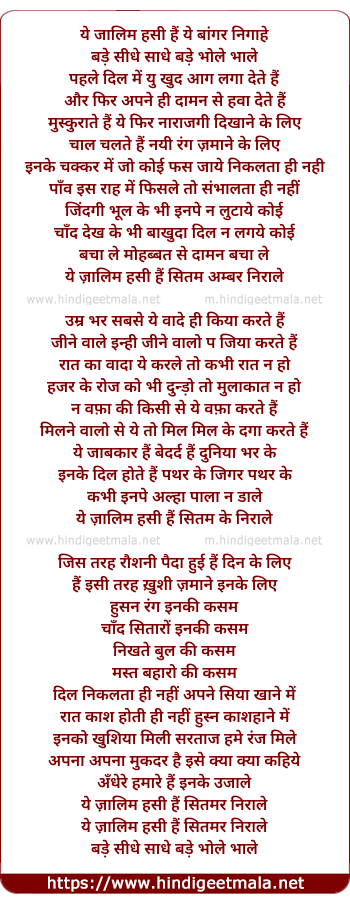 Poetic Translation - Lyrics of Ye Zalim Hasin Hai