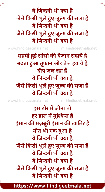 Lyrics of Ye Zindagi Bhi Kya Hai - ये जिन्दगी भी क्या है