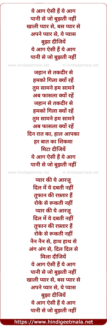 Lyrics of Yeh Aag Aisi Hai Yeh Aag - ये आग ऐसी हैं ये आग