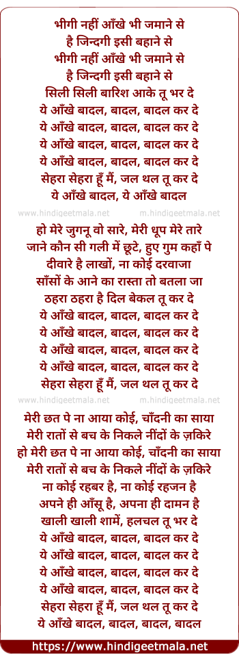 Lyrics of Ye Aankhe Baadal - ये आँखे बादल