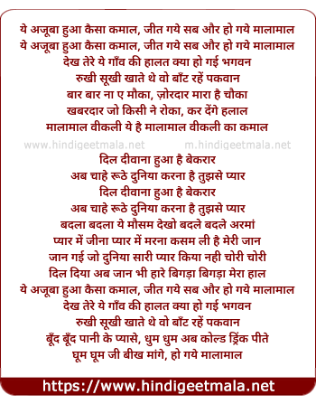 Lyrics of Yeh Ajuba Hua Kaisa Kamal - ये अजूबा हुआ कैसा कमाल, जीत गये सब और हो गये मालामाल
