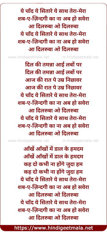 Lyrics of Ye Chand Ye Sitare Ye Sath Tera Mera - ये चाँद ये सितारे ये साथ तेरा-मेरा
