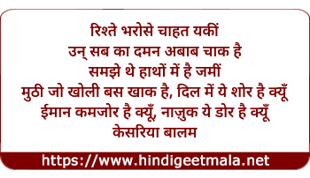 Lyrics of Rishte Bharose Chaahat Yakin (Sad) - रिश्ते भरोसे चाहत यकीं