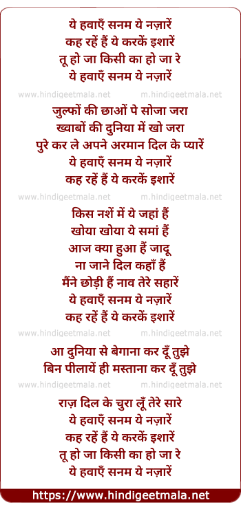 Lyrics of Yeh Hawaye Sanam - ये हवाएँ सनम