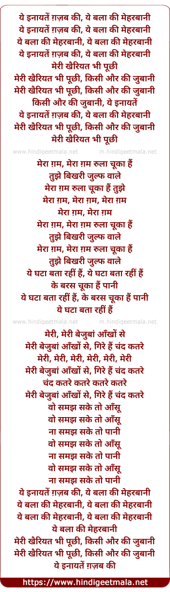 Lyrics of Yeh Inayate Ghazab Ki - ये इनायतें ग़ज़ब की, ये बला की मेहरबानी