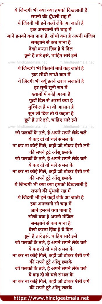 Lyrics of Yeh Jindagi Bhi Kya Kya Hamko Dikhalaati Hai - ये जिन्दगी भी क्या क्या हमको दिखलाती है