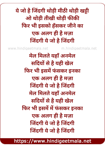 Lyrics of Yeh Jo Hai Zindagi - ये जो है जिंदगी थोड़ी मीठी थोड़ी खट्टी