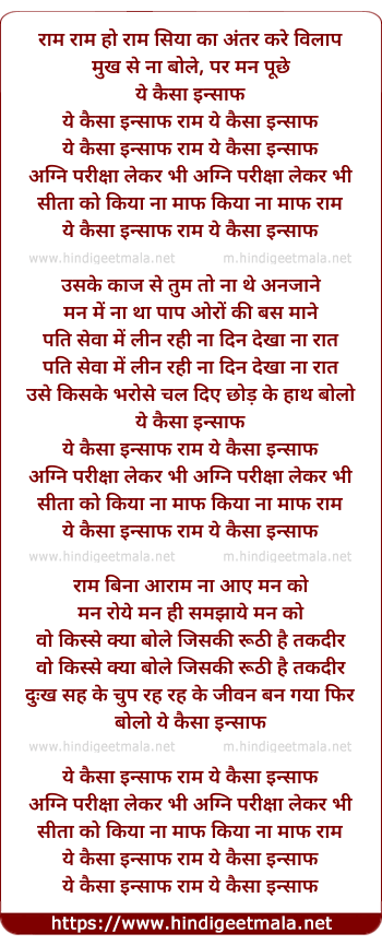 Lyrics of Ye Kaisa Insaaf Raam, Ye Kaisa Insaaf - ये कैसा इन्साफ राम, ये कैसा इन्साफ