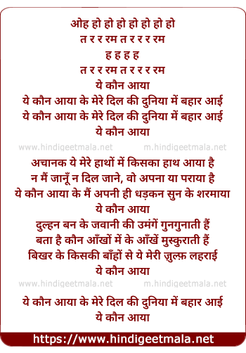 Lyrics of Ye Kaun Aaya - ये कौन आया