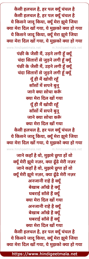 Lyrics of Yeh Kisne Jadu Kiya - कैसी हलचल है, हर पल क्यूँ चंचल है