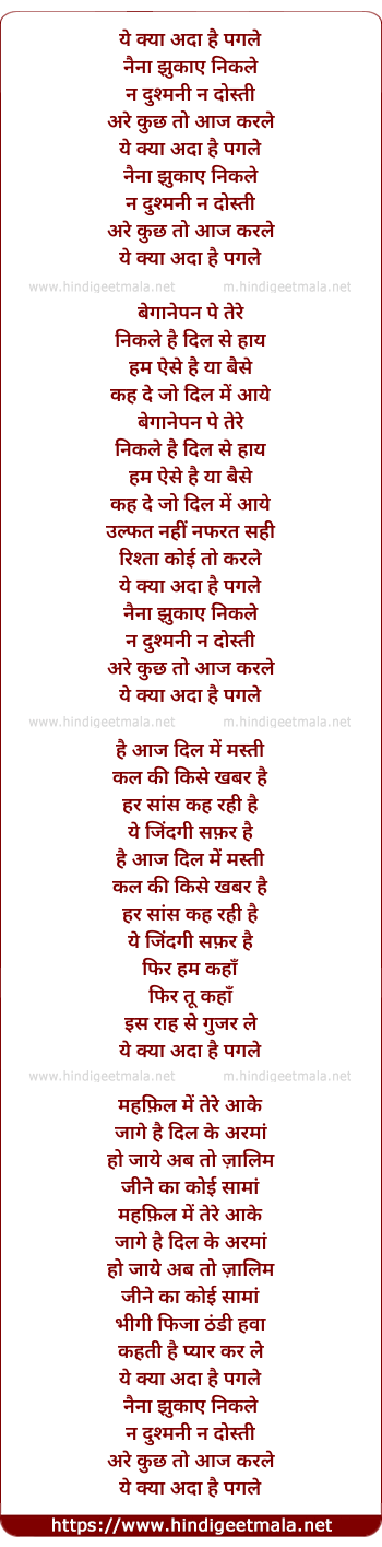 Lyrics of Yeh Kya Ada Hai Pagle