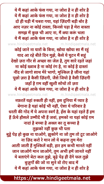 Lyrics of Yeh Mai Kaha Aake Fas Gaya - ये मैं कहां आके फंस गया