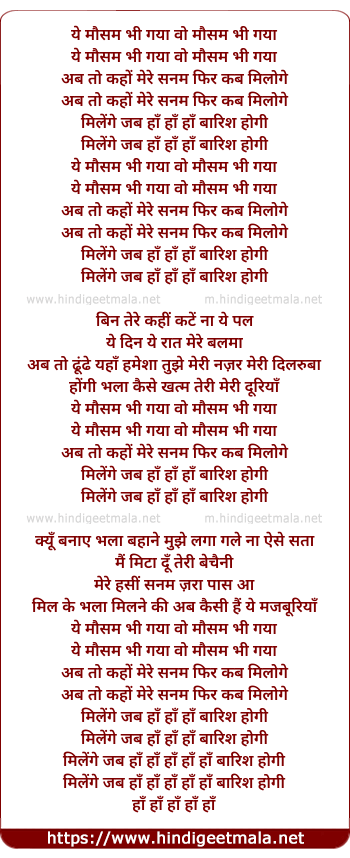 Lyrics of Yeh Mausam Bhi Gaya, Woh Mausam Bhi Gaya - ये मौसम भी गया वो मौसम भी गया