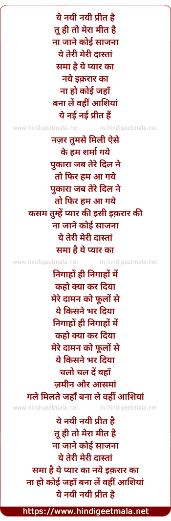 Lyrics of Ye Nayi Nayi Preet Hai, Tu Hi To Mera Meet Hai - ये नयी नयी प्रीत है, तू ही तो मेरा मीत है