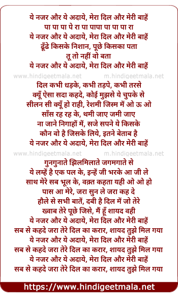 Lyrics of Yeh Nazar Aur Yeh Adayein - ये नजर और ये अदाये
