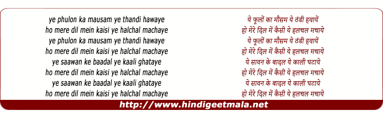 Lyrics of Yeh Phulo Ka Mausam Ye Thandi Hawaye - ये फूलों का मौसम ये ठंडी हवायें