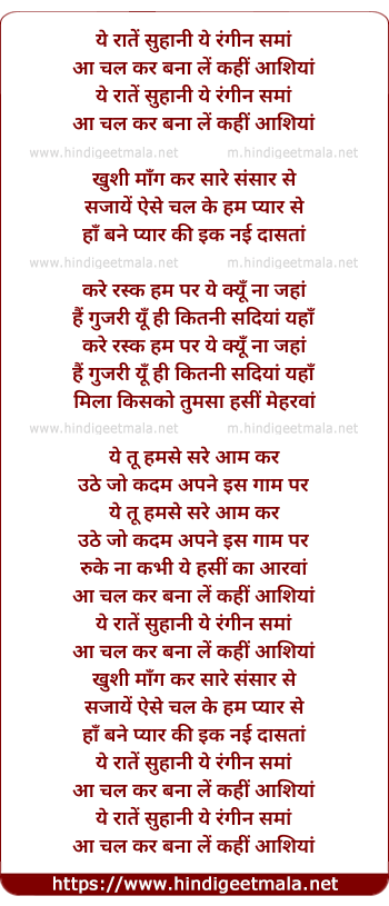Lyrics of Yeh Raaten Suhani - ये रातें सुहानी