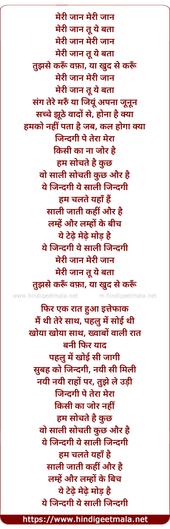 Lyrics of Yeh Saali Zindgi - मेरी जान मेरी जान
