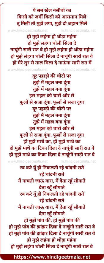 ho mujhe lehnga choli sila de nachungi sari rat ve