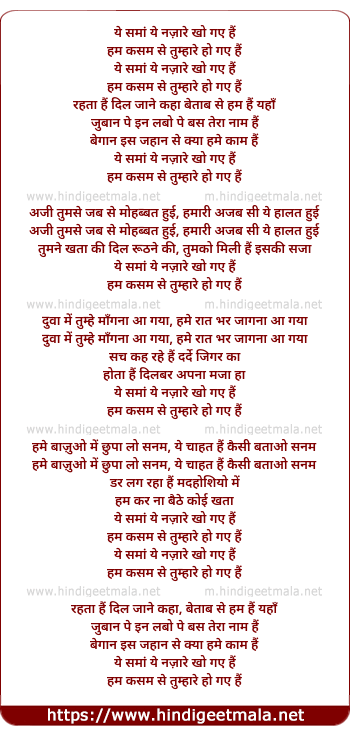 Lyrics of Ye Sama Ye Najare Kho Gaye Hain - ये समां ये नज़ारे खो गए हैं