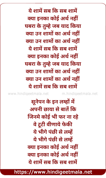 Poetic Translation - Lyrics of Ye Shaame - ये शामें
