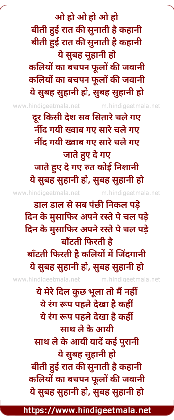 Lyrics of Ye Subah Suhani Ho - ये सुबह सुहानी हो