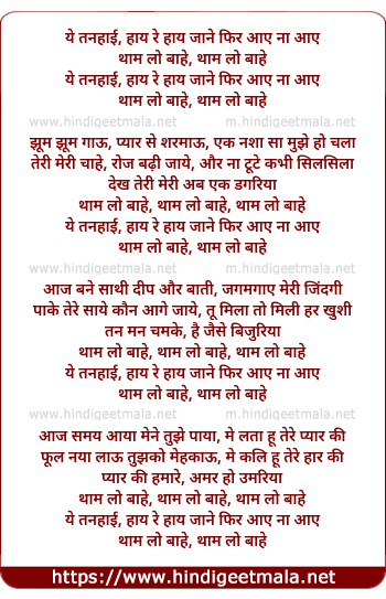 Lyrics of Ye Tanahaayee, Haye Re Haye - ये तनहाई, हाय रे हाय